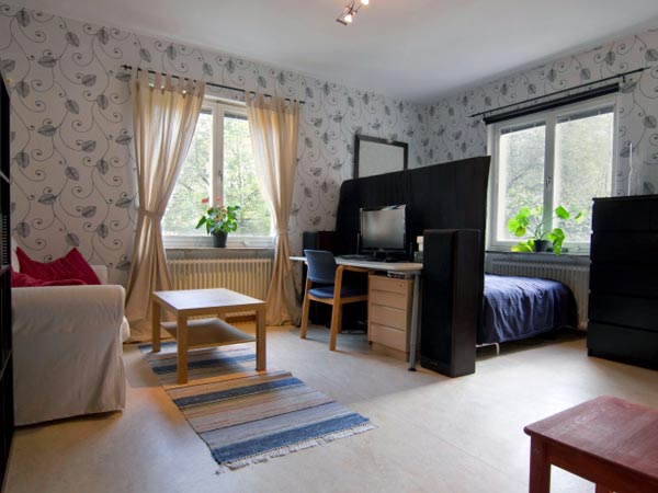 ஒரு வேளை சிறிய அபார்ட்மெண்ட்டில் தங்கியிருந்தால், அதற்கு இந்த வகையான அலங்கரிப்பு சரியாக இருக்கும். ஏனெனில் இதில் ஒரே அறையில் ஹால் மற்றும் படுக்கையறை உள்ளது. இந்த இரண்டிற்கும் ஒரு தடுப்புச் சுவராக ஒரு சிறிய சுவருடன் கூடிய மேசை வைக்கப்பட்டுள்ளது.