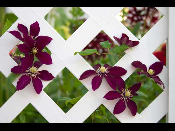 இயற்கை வேலி அமைக்கும் போது பச்சையாக இருந்தால் தான் நன்றாக இருக்கும். ஆனால் அவற்றில் ஒரு சில நிறங்களில் அமைத்தால் கூட நன்றாக கண்ணைப் பறிக்கும் வகையில் அழகாக இருக்கும். கொடிகளில் பூக்கும் பூக்களாலும் வேலிகளை அமைக்கலாம். இவற்றால் சரியான பாதுகாப்பு இல்லாவிட்டாலும், வேலியை மிகவும் அழகுள்ளதாக மாற்றும். அதிலும் இதனை மூங்கிலின் மீது படர விட்டால், மிகவும் அருமையாக இருக்கும். அதற்கு க்ளிமேடிஸ் என்னும் மலர் கொடி தான் சிறந்தது. இந்த கொடி ஊதா நிறத்தில் பூக்களை பூக்கும்.