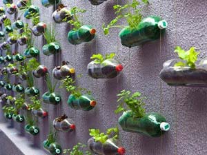 3. பூத்தொட்டி : ஒரு பாட்டிலை எடுத்துக் கொண்டு, அதன் பாதியை வெட்டி, அதில் மண்ணை நிரப்பி செடிகளை வைத்து தண்ணீர் ஊற்றி வளர்க்கலாம். இல்லையென்றால் பாட்டிலின் நடுபகுதியில் செவ்வக வடிவத்தில் வெட்டி, அதில் மண்ணை போட்டு செடிகளை வைத்து, சுவற்றில் இரண்டு ஆணியை அடித்து, பாட்டிலின் இரு முனைகளிலும் கயிற்றைக் கட்டி, ஆணியில் தொங்க விடலாம். இவ்வாறு செய்தால் வீடு பார்க்க அழகாக இருப்பதோடு, பச்சை பசேலென்று இருக்கும்.